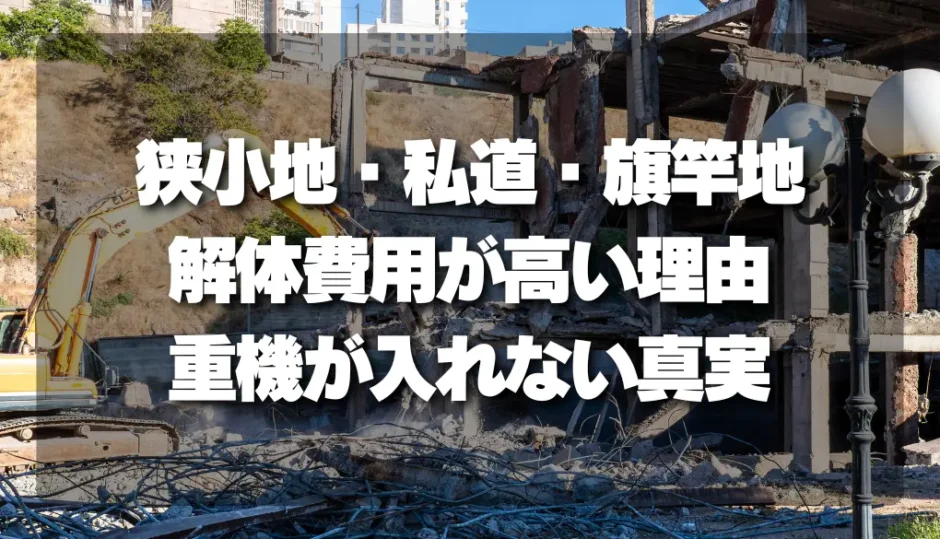 旗竿地・狭小地・私道奥の物件で解体費が上がる理由は、大きく3つに集約されます。